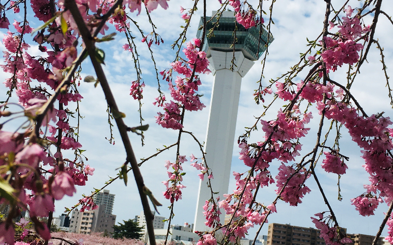 今年見に行ったときにとても綺麗でちょうどよく五稜郭タワーが見えるところがあったので撮ってみました!