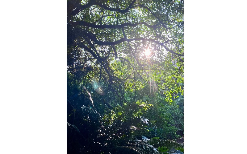 糸満の森で散歩をしていると上から太陽光が差し込んだ。その瞬間、森の精霊に会ったと思った。