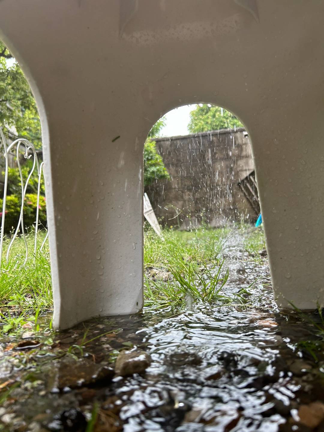 大雨が降ってきて、急いで入った場所は、風呂椅子の下!?ちょっと天井に穴が空いてるじゃないのよ!!これじゃあ、私の完璧なヘアスタイルが崩れるじゃないの!!!