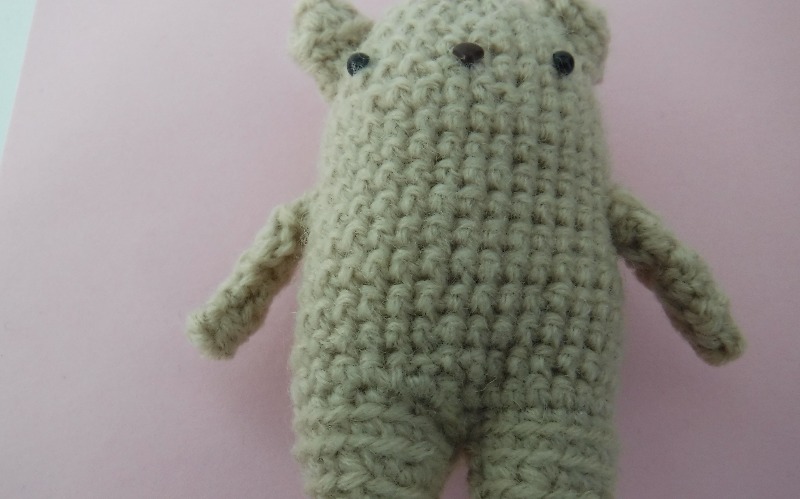 人生で初めて作ったあみぐるみです。作り方が載っている本を読んで空いた時間に少しずつ作りました。よりかわいくするために目と鼻の位置をほぼ横並びにしました。