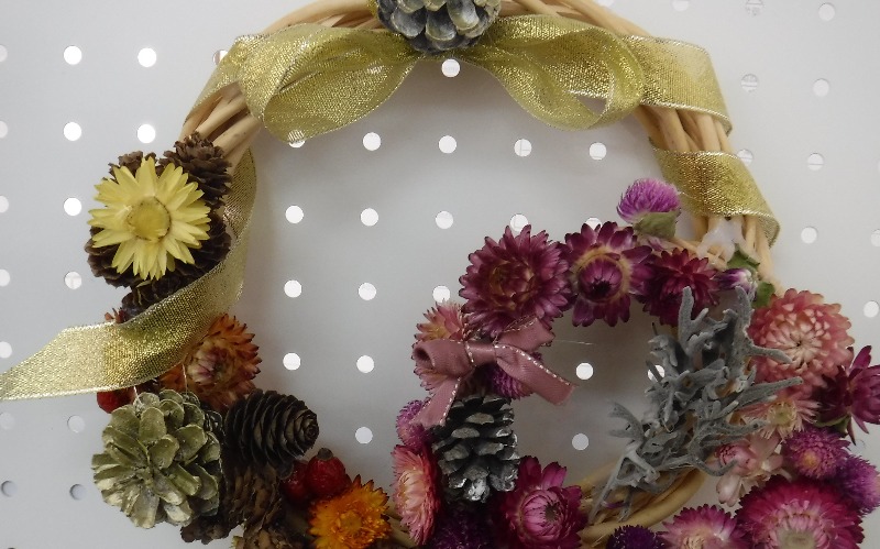 リースを2つ使って、それぞれ違う世界観にしてみました。