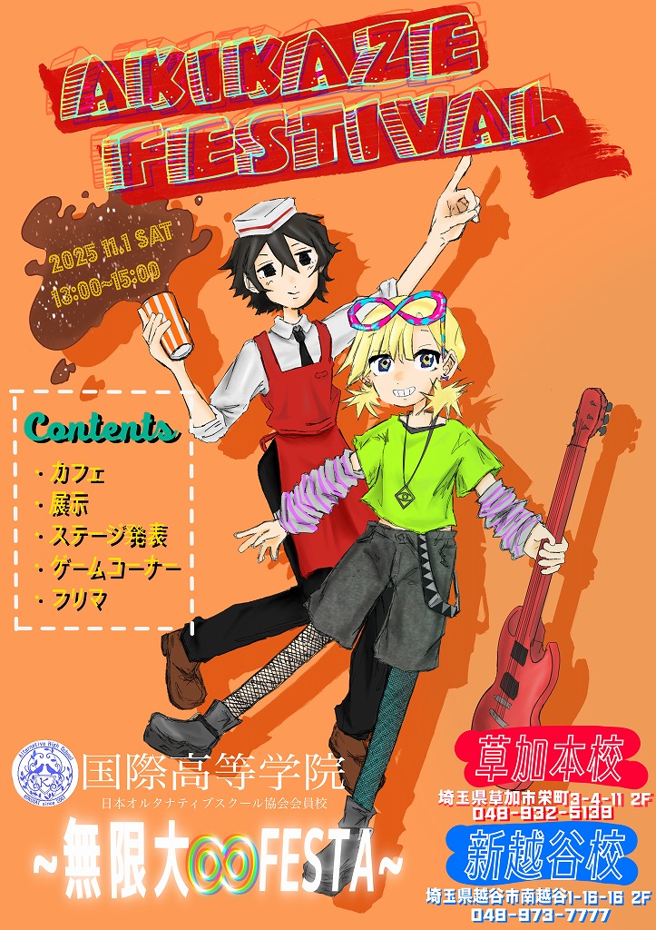 草加本校・新越谷校の文化祭「秋風祭」のポスターです。